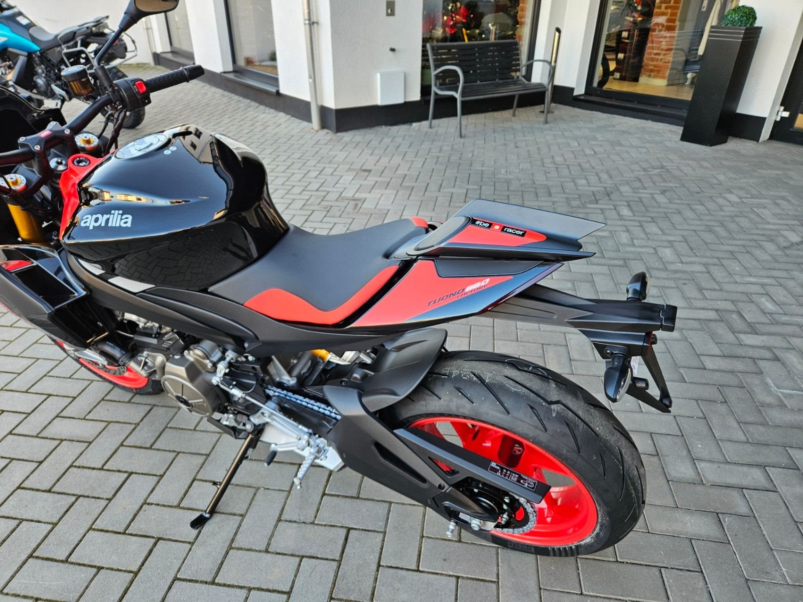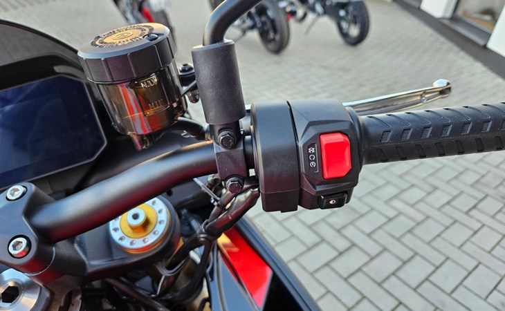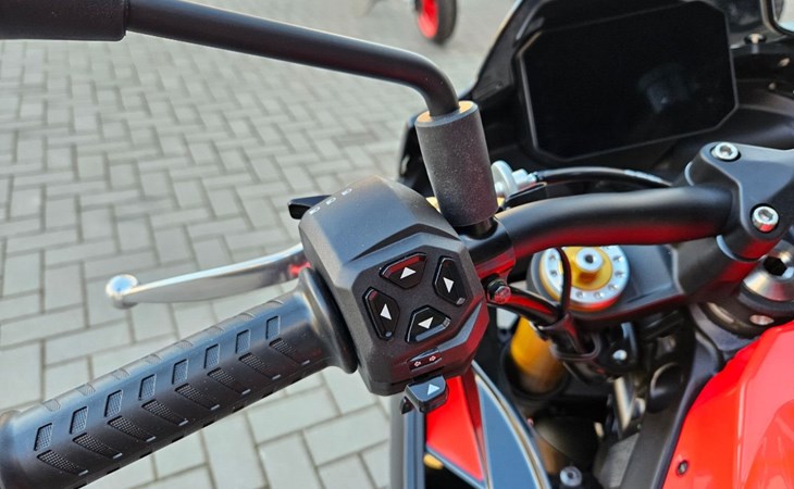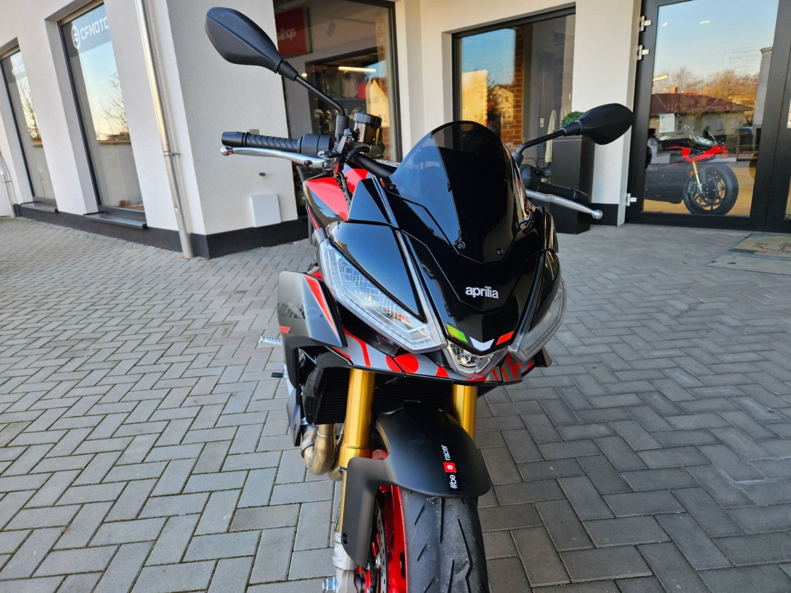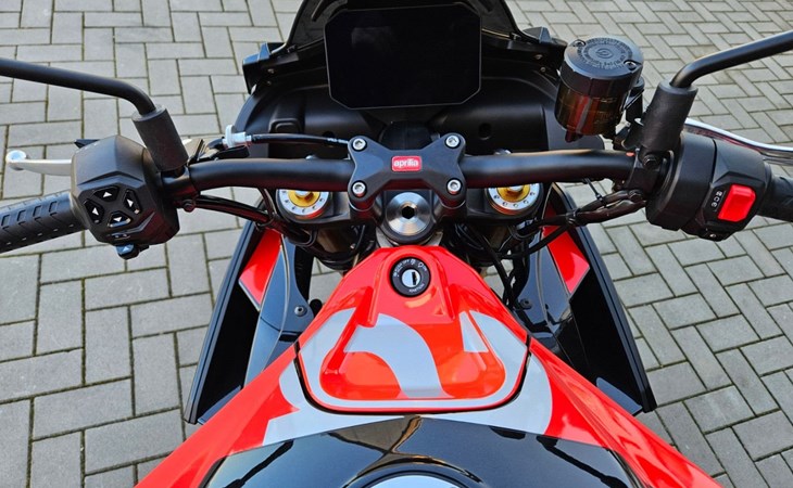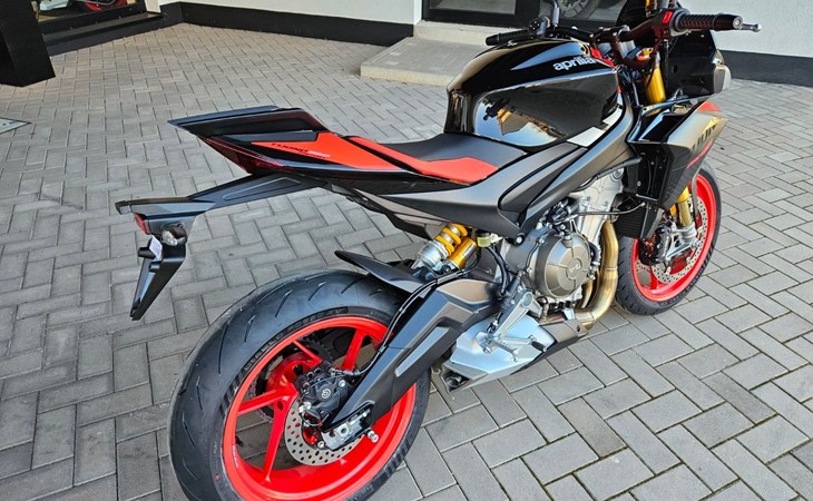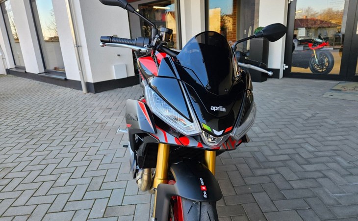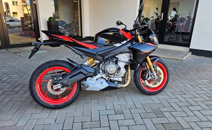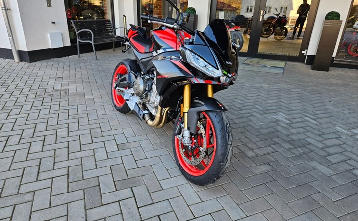- Tuono 660 Special Edition mit roten Felgen - 10.999€ Fahrzeugpreis zu 1,99% bis 36 Monate möglich - Finanzierung zu 4,99% Zinssatz bis 96 Monate möglich - 10.799€ - Achtung Bilder zeigen Mehrausstattung, Soziusabdeckung zzgl. 239€ - Full-LED-Scheinwerfer und Blinker. - Gebondetes 5-Zoll-TFT-Display. - Hinterleuchtete Bedienelemente. - APRC-System mit 6-Achsen-Inertiaplattform: - Motorkennfelder (AEM), - Motorbremse (AEB), - Kurven-ABS (3 Mappings und Stoppie-Kontrolle), - Traktionskontrolle (ATC), - Wheelie-Kontrolle (AWC), - Aprilia Launch Control (ALC), - 5 Riding-Modes. - Aprilia Cruise Control (ACC). - Aprilia Quick Shifter (AQS). - Stahlummantelte Bremsleitungen. - Schwarz lackierte Schwinge und Rahmen