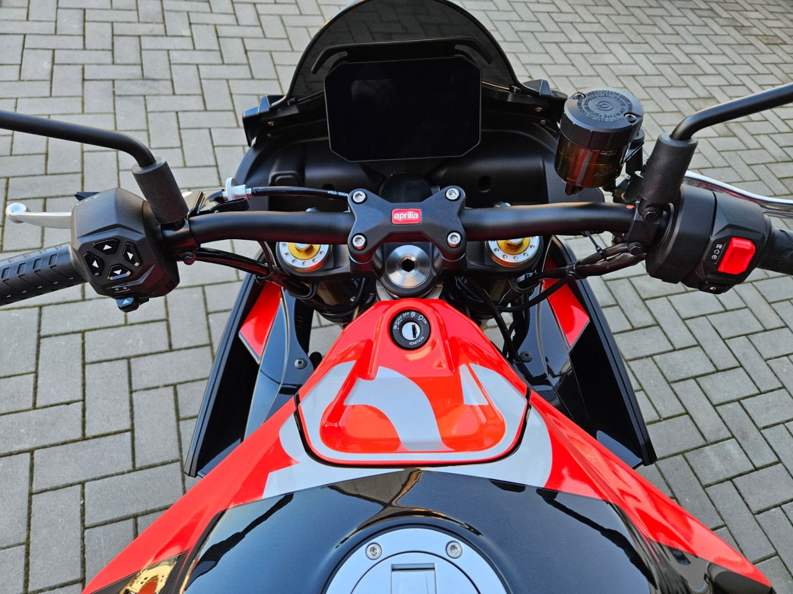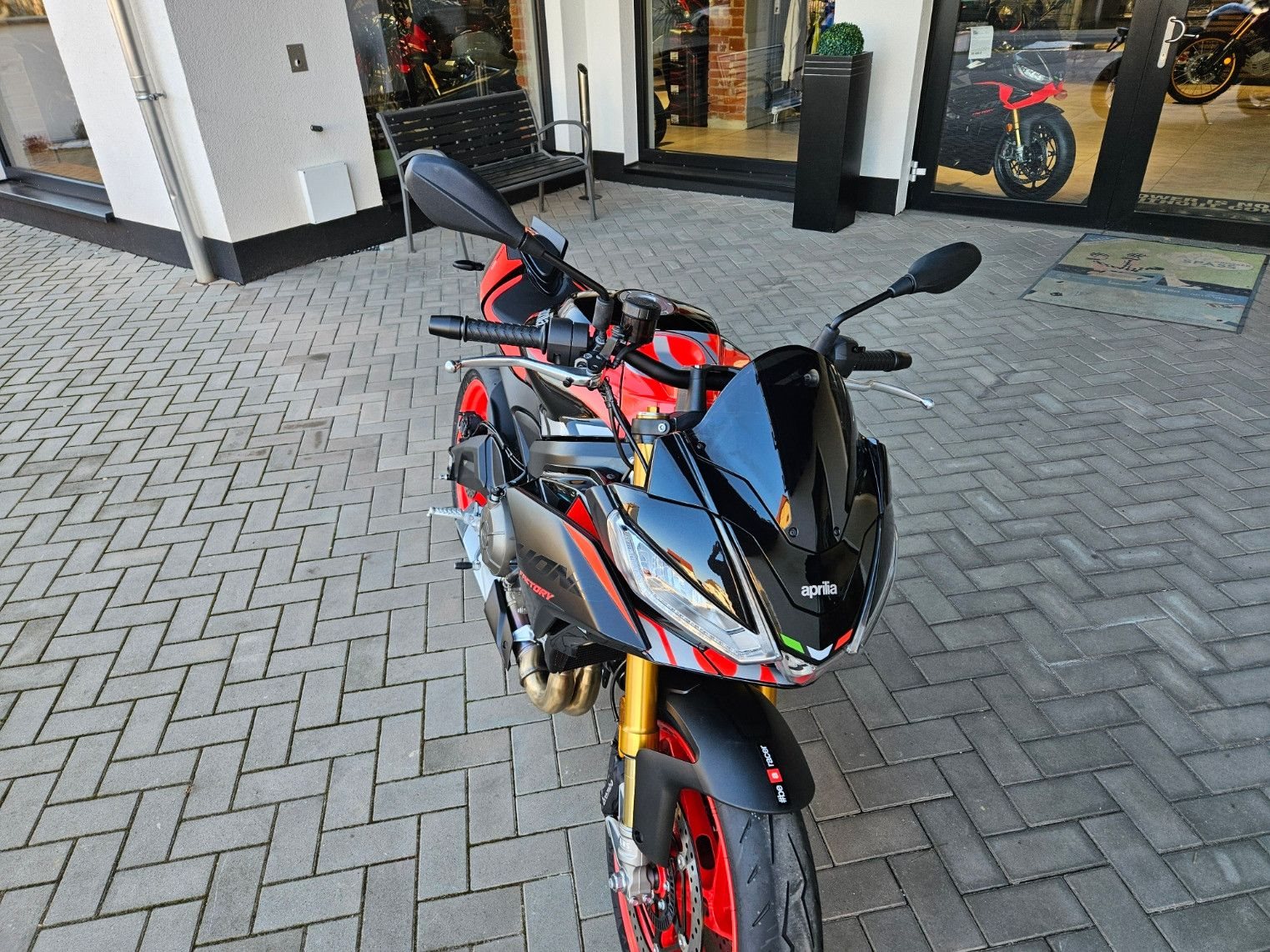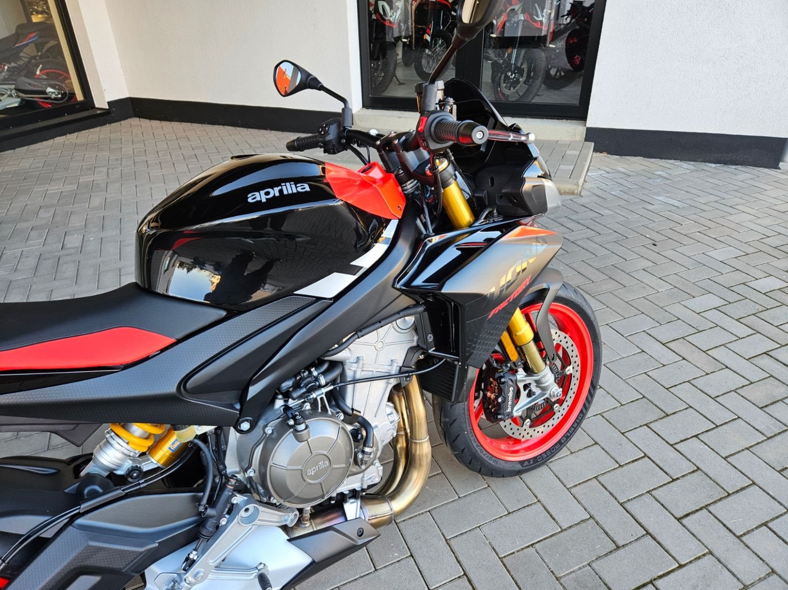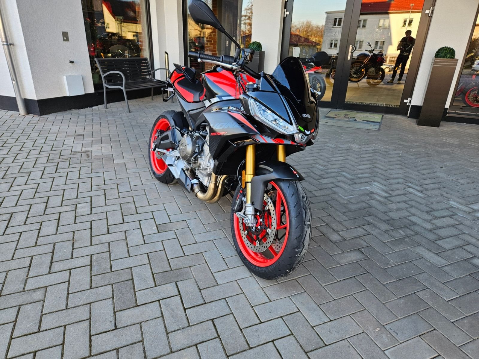 - Tuono 660 Special Edition mit roten Felgen - 10.999€ Fahrzeugpreis zu 1,99% bis 36 Monate möglich - Finanzierung zu 4,99% Zinssatz bis 96 Monate möglich - 10.799€ - Achtung Bilder zeigen Mehrausstattung, Soziusabdeckung zzgl. 239€ - Full-LED-Scheinwerfer und Blinker. - Gebondetes 5-Zoll-TFT-Display. - Hinterleuchtete Bedienelemente. - APRC-System mit 6-Achsen-Inertiaplattform: - Motorkennfelder (AEM), - Motorbremse (AEB), - Kurven-ABS (3 Mappings und Stoppie-Kontrolle), - Traktionskontrolle (ATC), - Wheelie-Kontrolle (AWC), - Aprilia Launch Control (ALC), - 5 Riding-Modes. - Aprilia Cruise Control (ACC). - Aprilia Quick Shifter (AQS). - Stahlummantelte Bremsleitungen. - Schwarz lackierte Schwinge und Rahmen